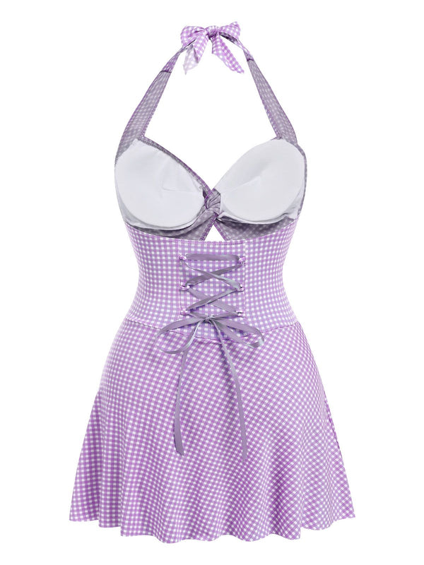 Rot 1930er Kariert Halter Einteiliger Badeanzug