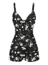 Schwarz & Weiß 1940er Blumen Boxer Träger Badeanzug
