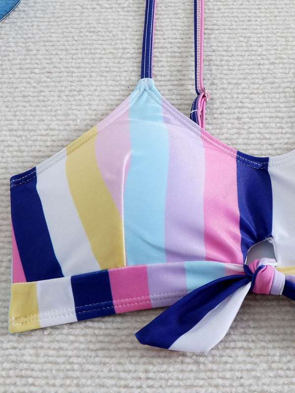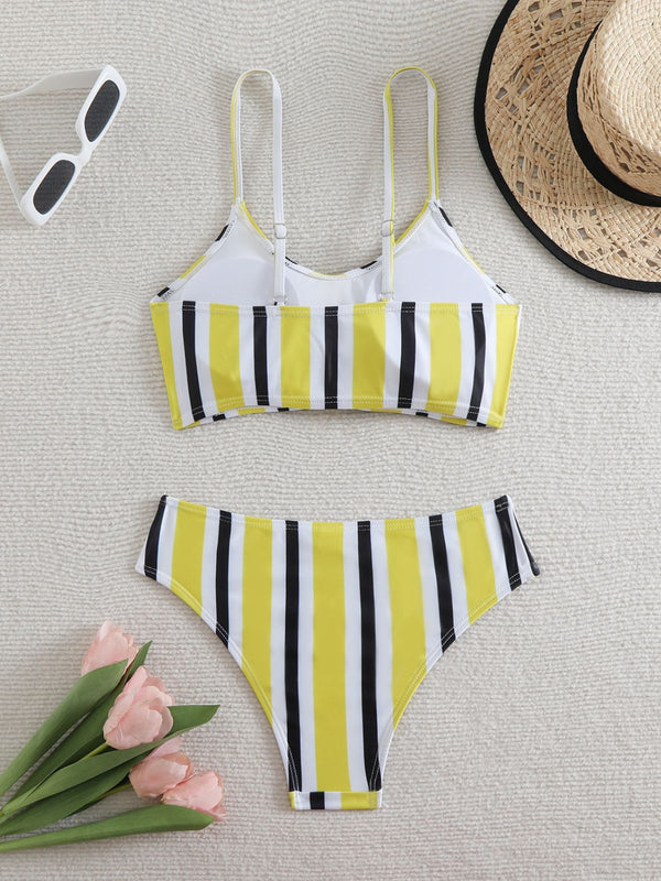 1940er Spaghetti Träger Bogen Kontrast Streifen Bademode