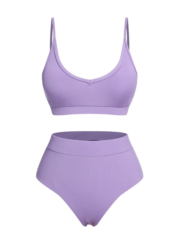 Lila 1950er Spaghetti Träger Solide Badeanzug