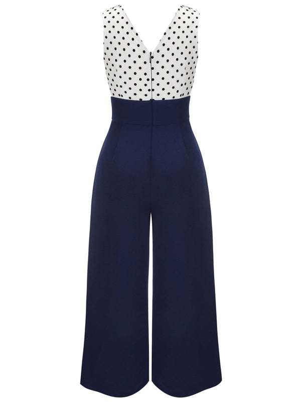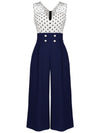 [Übergröße] Dunkelblau 1930er Polka Dot Patchwork Jumpsuit