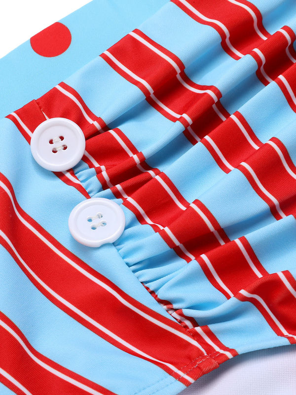 Blau 1940er Polka Dot Streifen Halter Bikini Set
