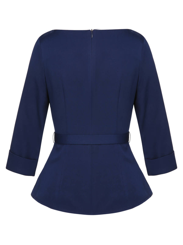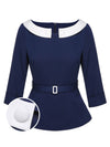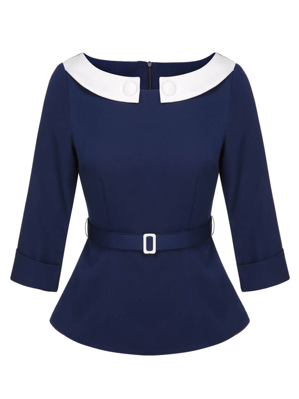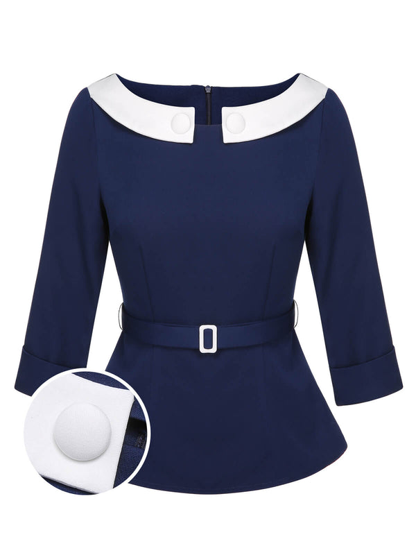 Blau 1960er Peter-Pan-Kragen Gürteltop