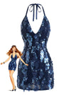Dunkelblau 2000er Solide Slip Pailletten Kleid