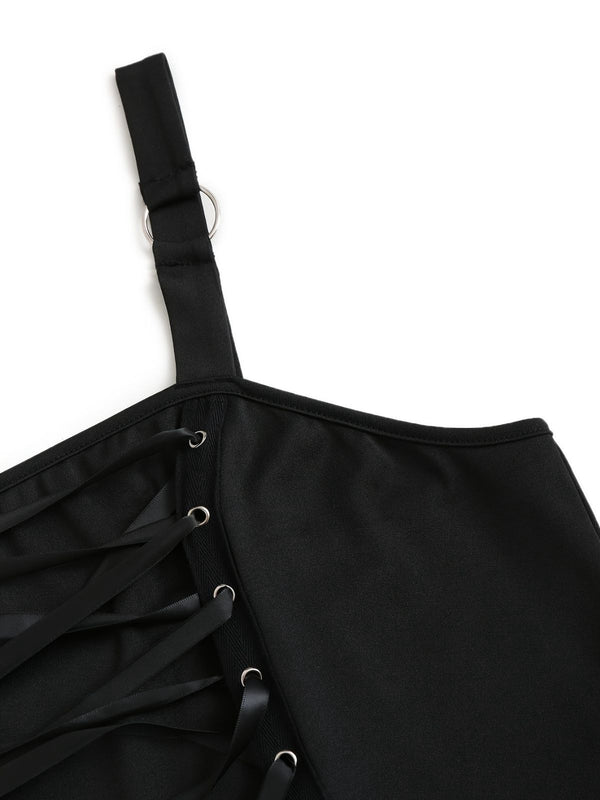 [Übergröße] Dunkelblau 1950er Halloween Schläger Schnürung Kleid