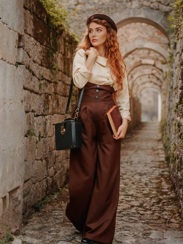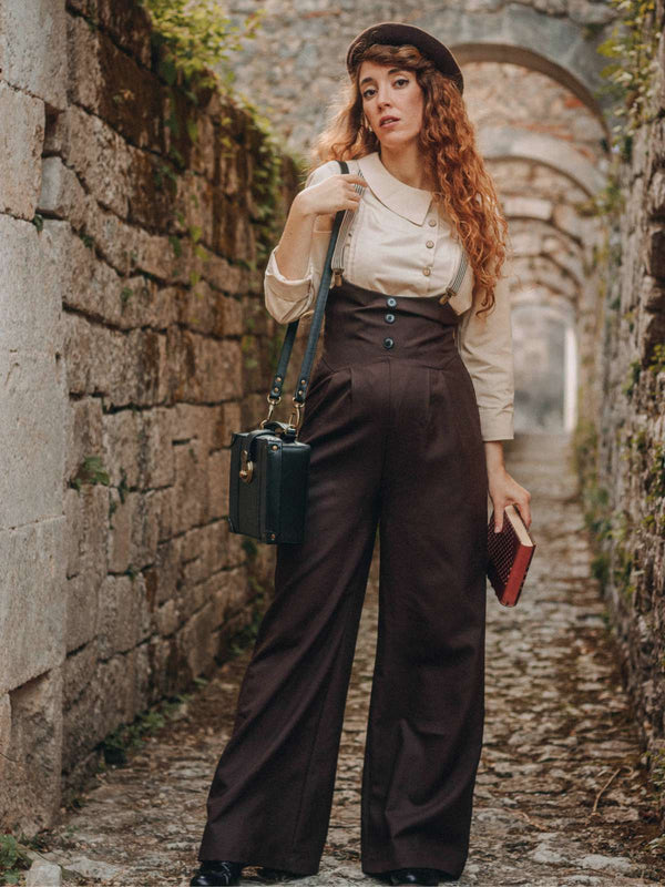 2PCS 1930er Baumwolle Solide Bluse & Latzhose