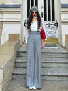 2PCS 1940er Satin Puffärmel Bluse & Glen Plaid Overall Hose