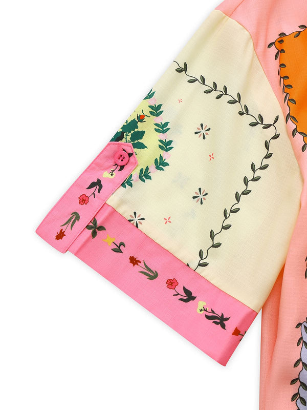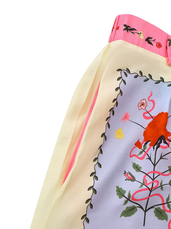 2PCS 1970er Boho Blumen Bluse & Gürtel Shorts