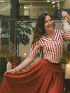 2PCS Orange Rot 1950er Gestreifte Bluse & Faltenrock