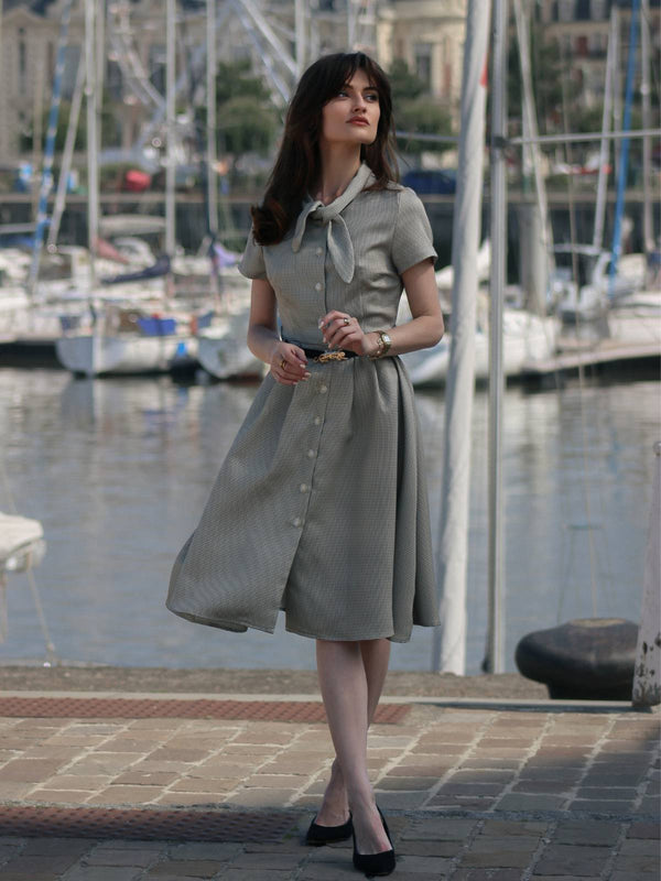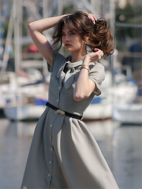 Braun 1940er Kleines Fensterkaro Plaid Kleid