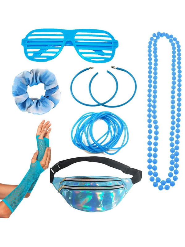 Lieferumfang: 1 x Brille, 1 x Armband, 1 x Halskette, 1 x Haargummi, 1 x Tasche, 1 Paar Ohrringe und Handschuhe