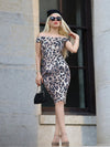 SCHULTERFREIES LEOPAR BLEISTIFT KLEID