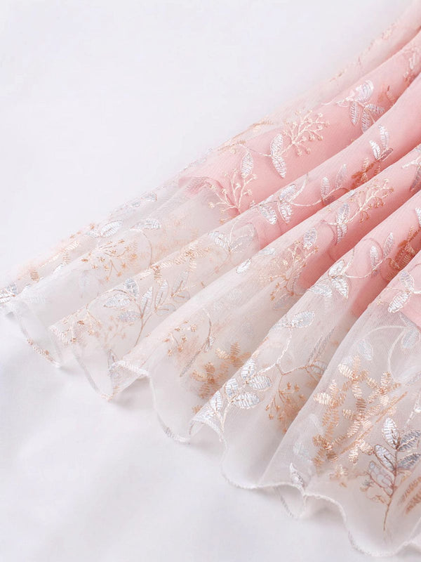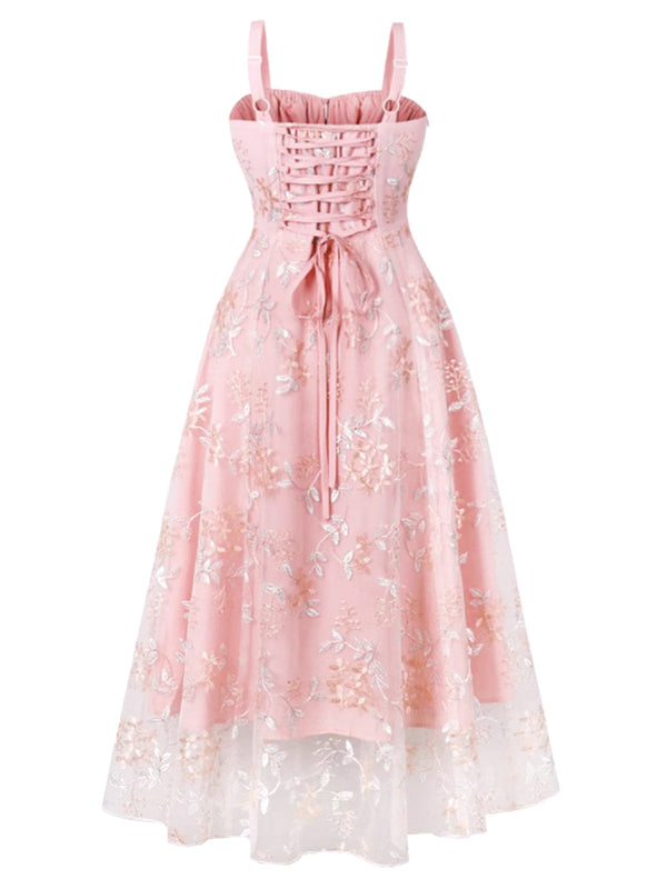 Rosa 1950er Schnürung Träger Blumen Netz Kleid