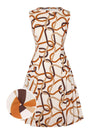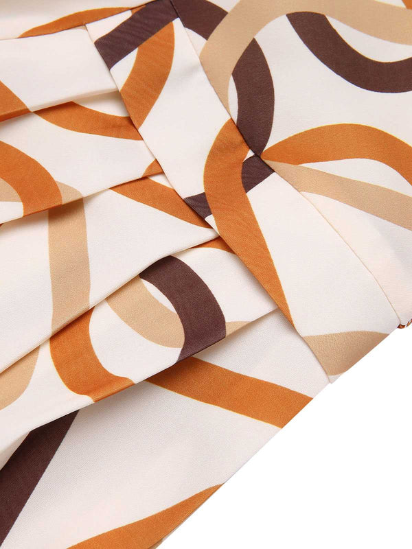 Gelbes 1960er Stehkragen bedrucktes plissiertes Kleid