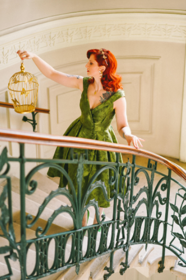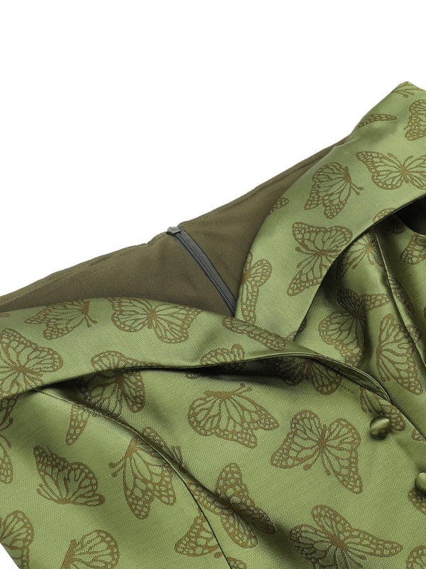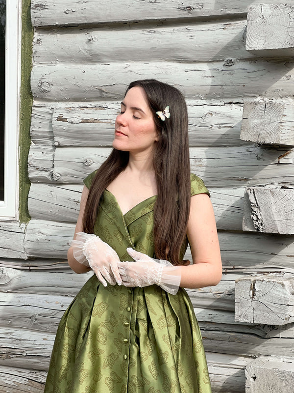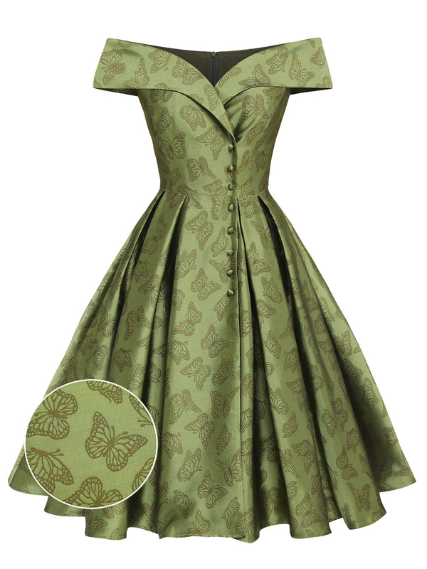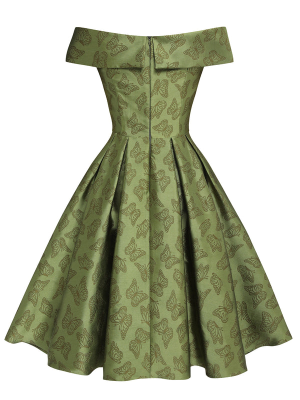1950ER GRÜNES SCHULTERFREIES VINTAGE Schmetterling KLEID