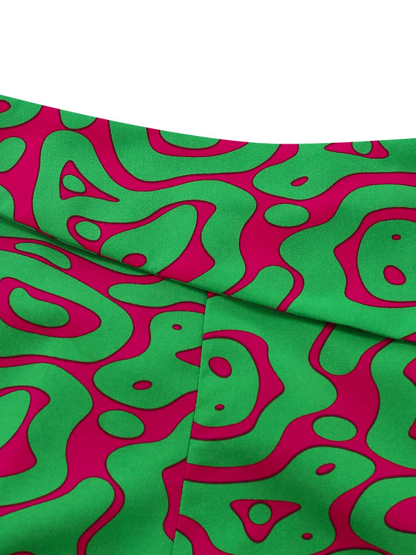 2PCS Grün 1970er Abstrakt Muster Kurz Top & Shorts