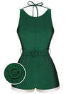 Grüne 1940er Ärmelloses Rückenloser Halfterbadeanzug
