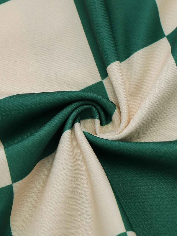 Grün 1970er Argyle Fischschwanz Kleid Mit Binden