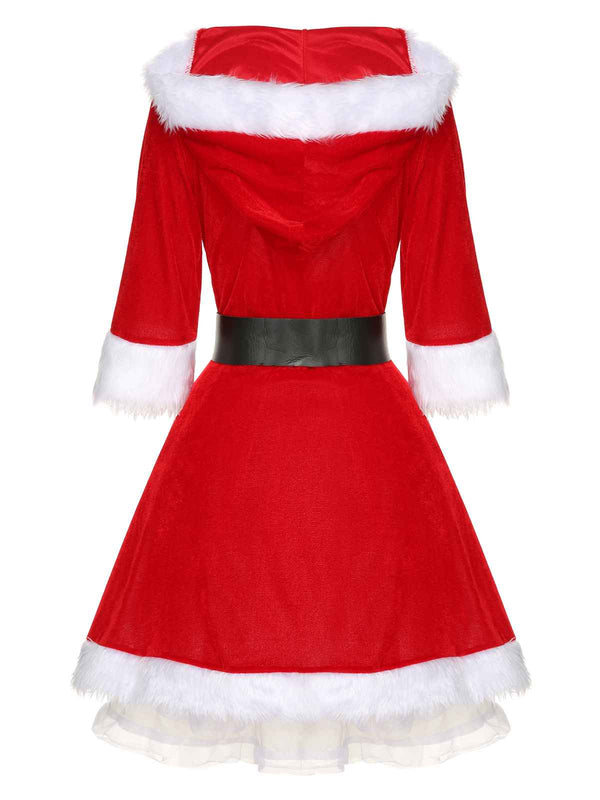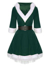Grün Weihnachten Kapuze Santa Claus Roher Saum Gürtel Kleid