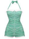 Hellgrün Gingham 1950er Schleife Neckholder Badeanzug