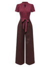 Rot 1930er Plaid Schlüssellochhals Jumpsuit