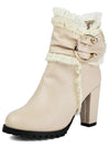 Beige PU Leder Spitze-Getrimmt Chunky Ferse Knöchel Stiefel