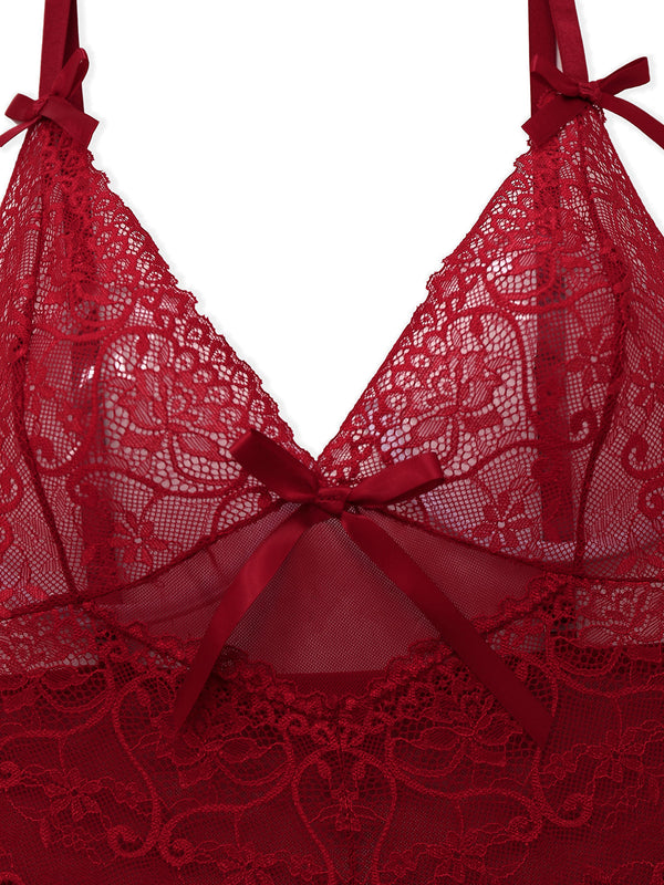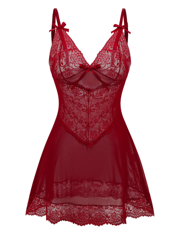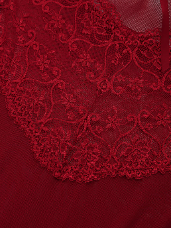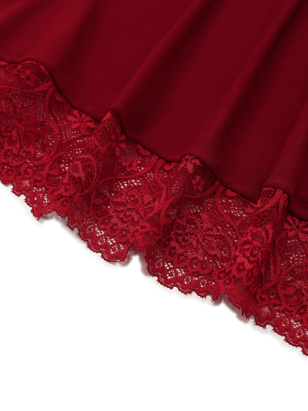 Weinrot 1950er Träger Spitze Bogen Nachthemd