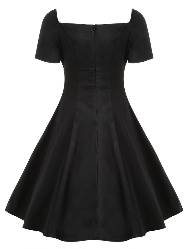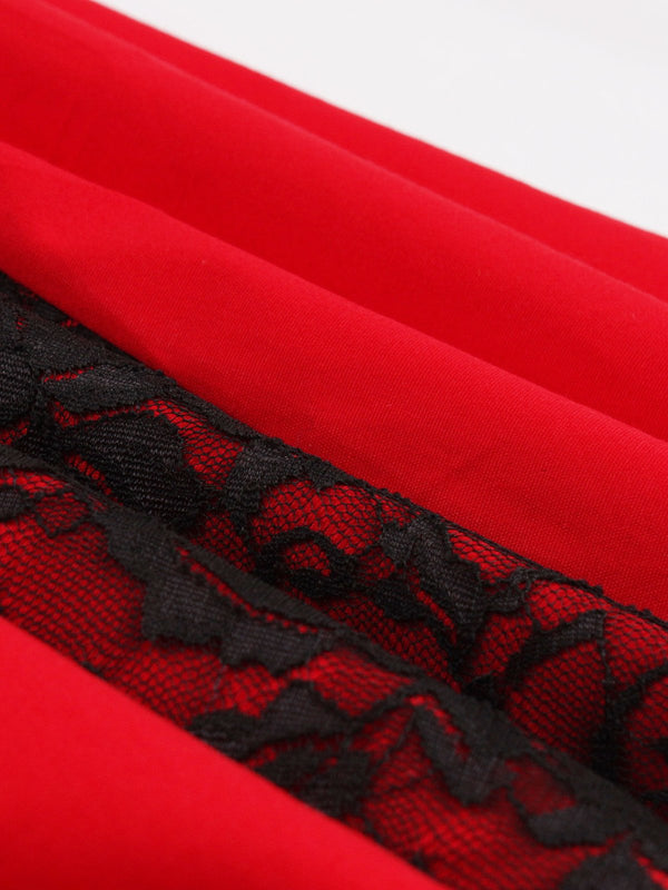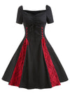 Ein Genuss für einen erschreckenden Abend! Dieses entsetzlich entzückende Swingkleid mit Schnürung ist mit floraler Spitze verziert. Bringen Sie Nervenkitzel und Nervenkitzel mit dieser sensationellen Mid-Century-Silhouette.