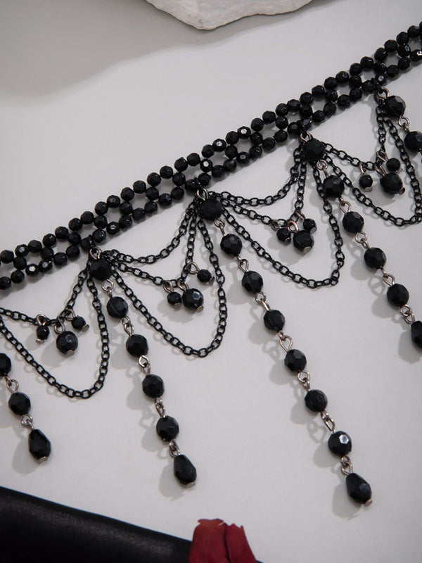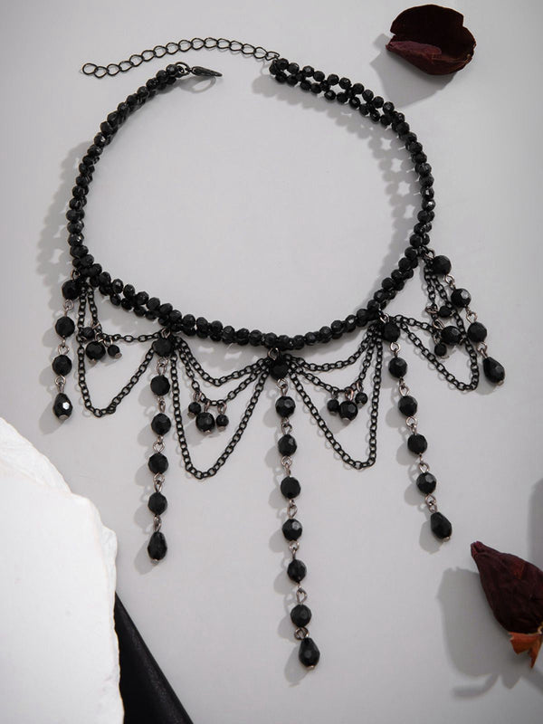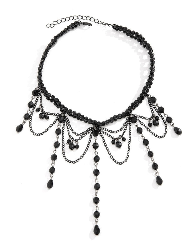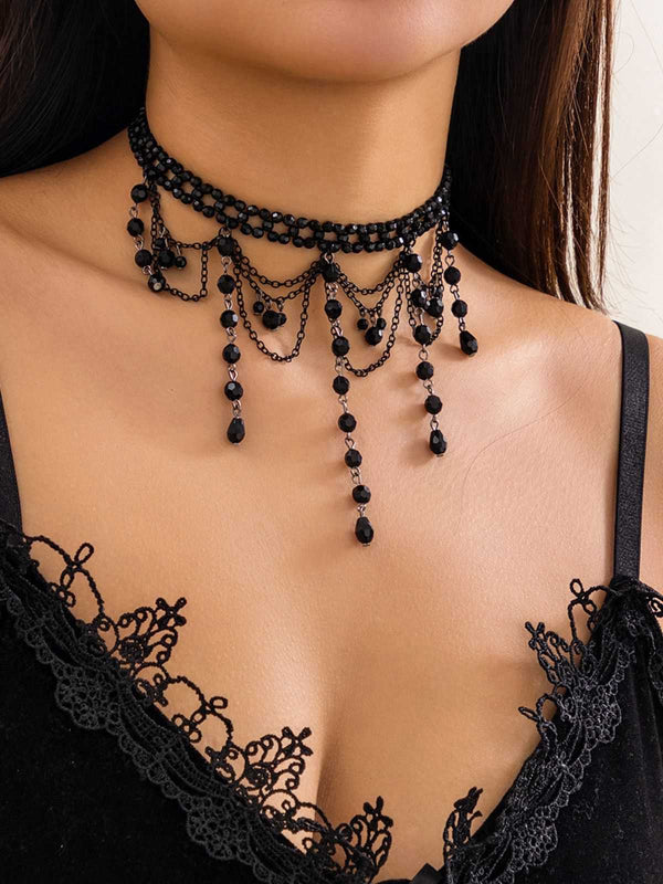 Schwarz Gothic Künstlich Kristall Quasten Anhänger Halskette