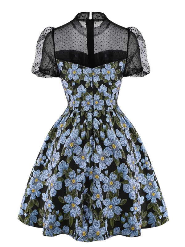 1970er Gänseblümchen Polka Dot Netz Kleid