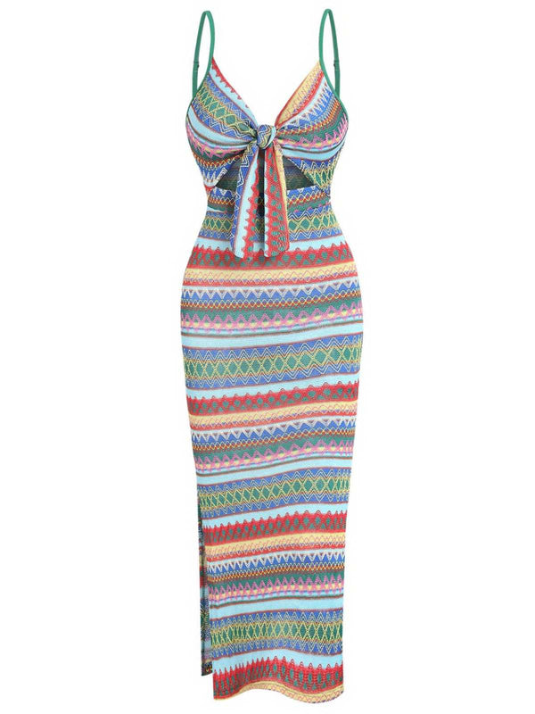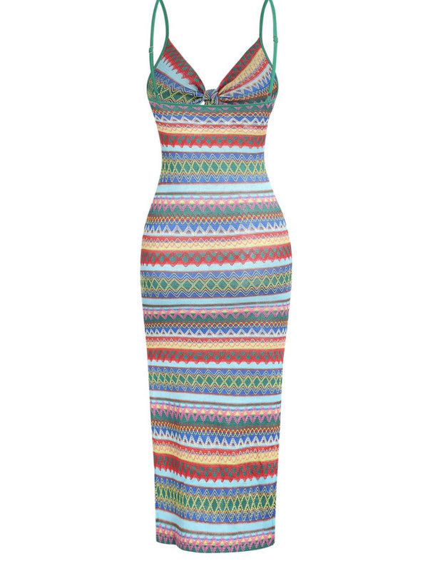 1970er Träger Bunt Streifen Binden Boho Kleid
