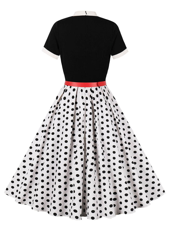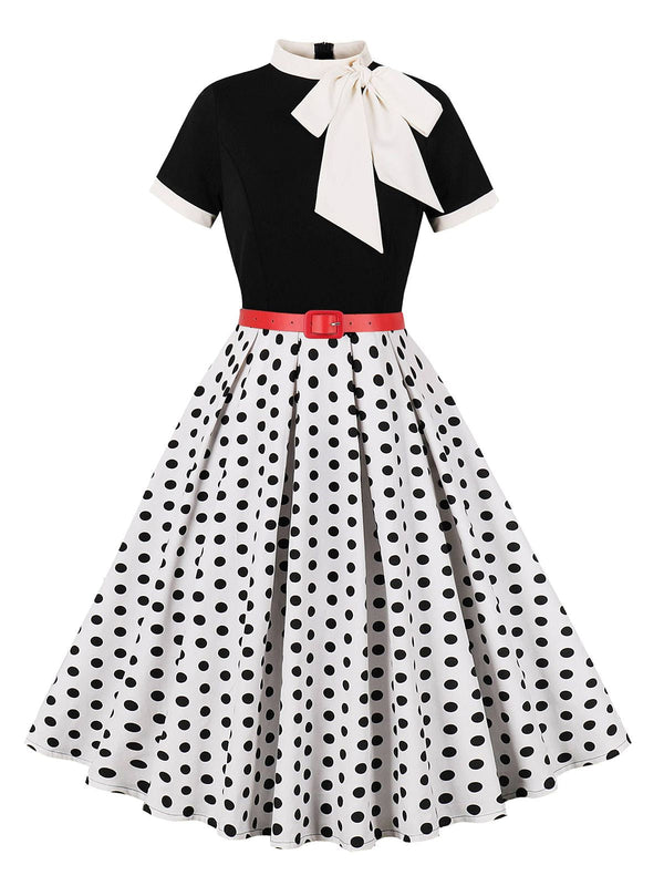 [Vorverkauf] 1950er Krawattenhals Polka Dots Gürtel Kleid