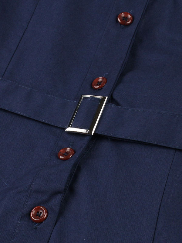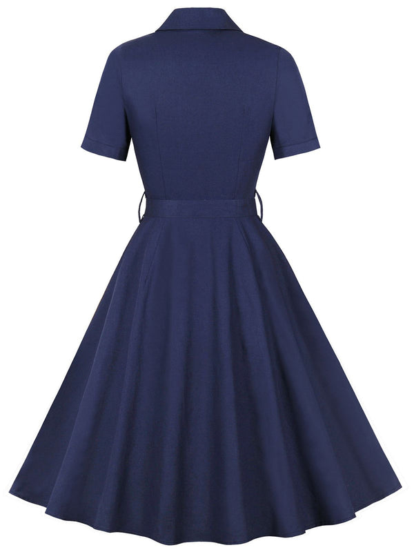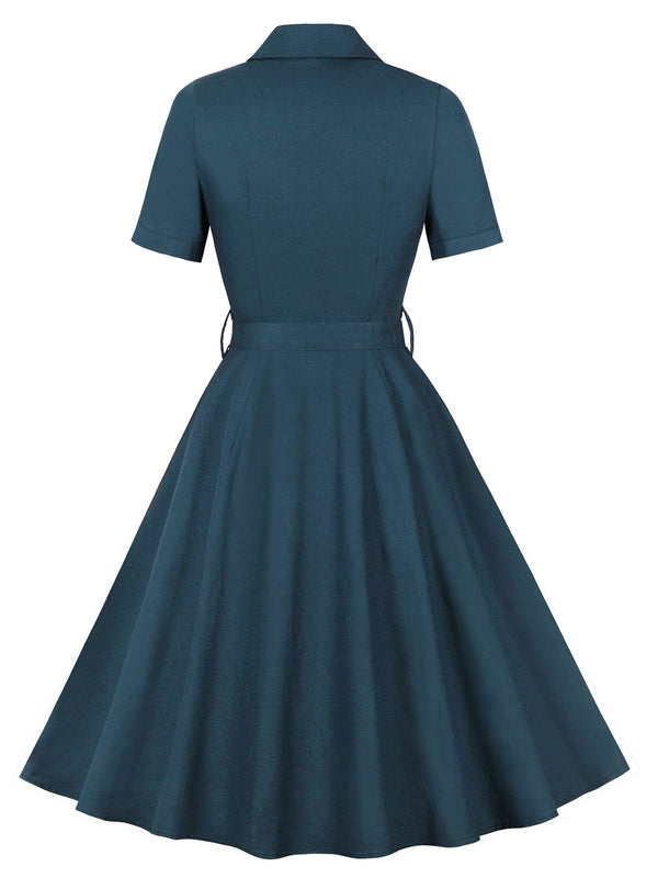 1950er Revers Solide Tasten Gürtel kleid