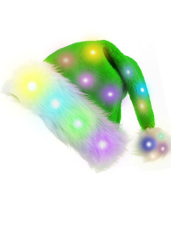 Weihnachten Flauschiger Besatz LED Santa Hut mit Bunte Lichter