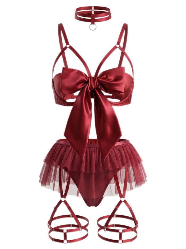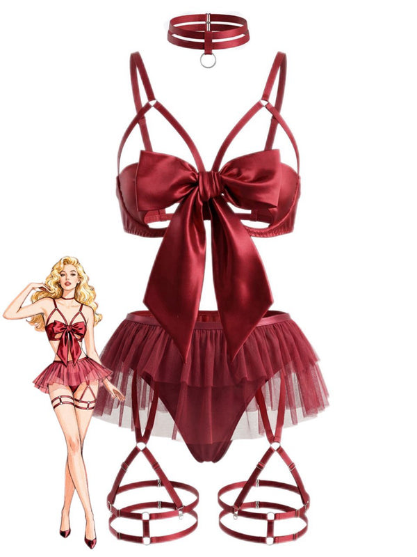 Lieferumfang: 1 x Damenpyjama, 1 x Damenstring, 1 x Damenrock, 1 x Damenhalsband, 2 x Damenbeinringe