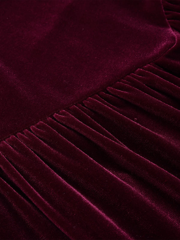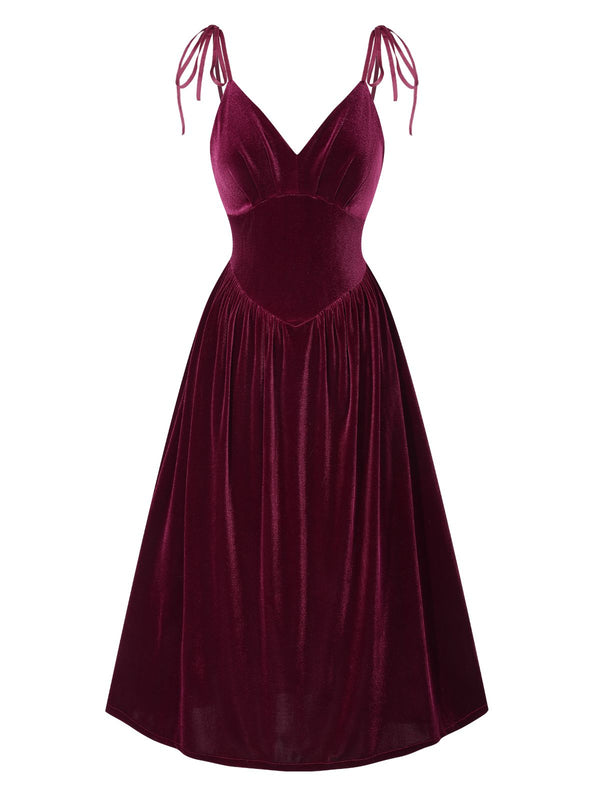 Weinrot 1950er Spaghetti Träger Samt Nachthemd