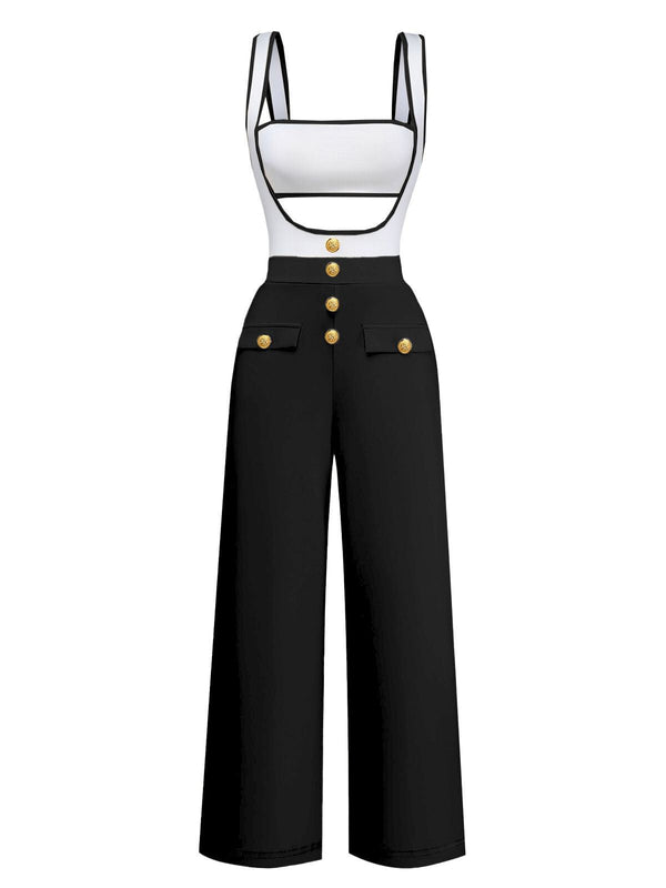 1950er Trägerlos Cut-Out Patchwork Jumpsuit Set