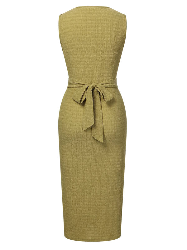 Grün 1960er Strukturiert Binde Ärmellos Kleid