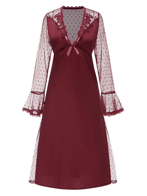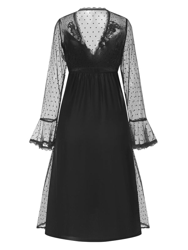 1950er Dots Transparente Ärmel Tief V-Ausschnitt Nachthemd