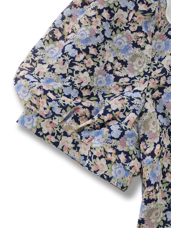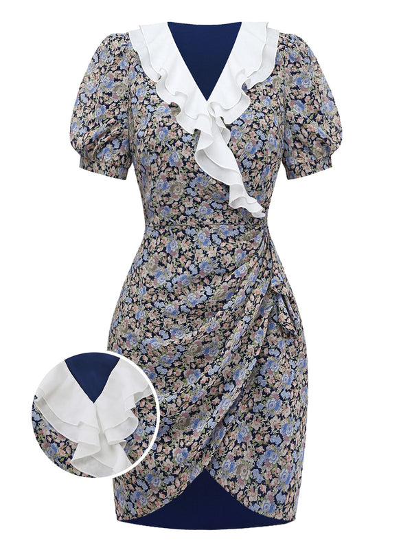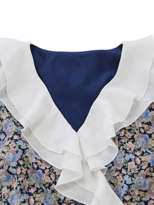 [Vorverkauf] 1970er Rüschen Kragen Puffärmel Blumen Wickel Kleid