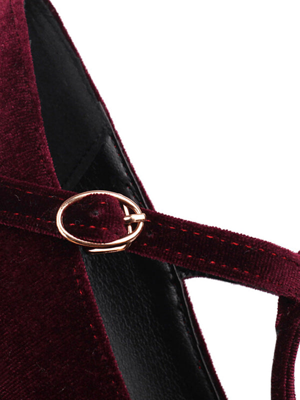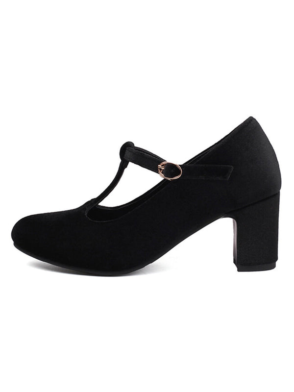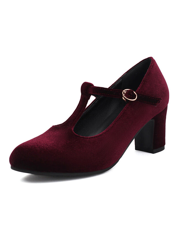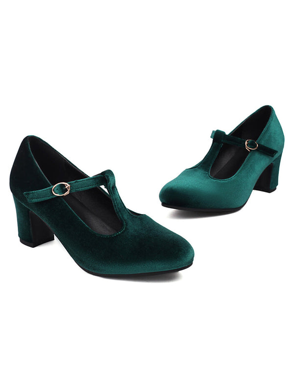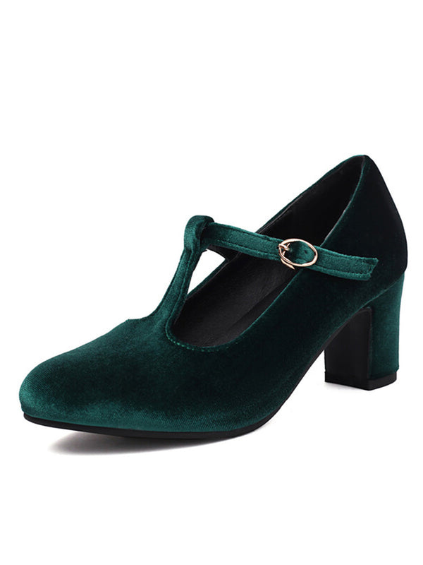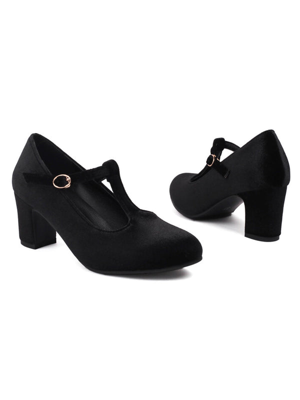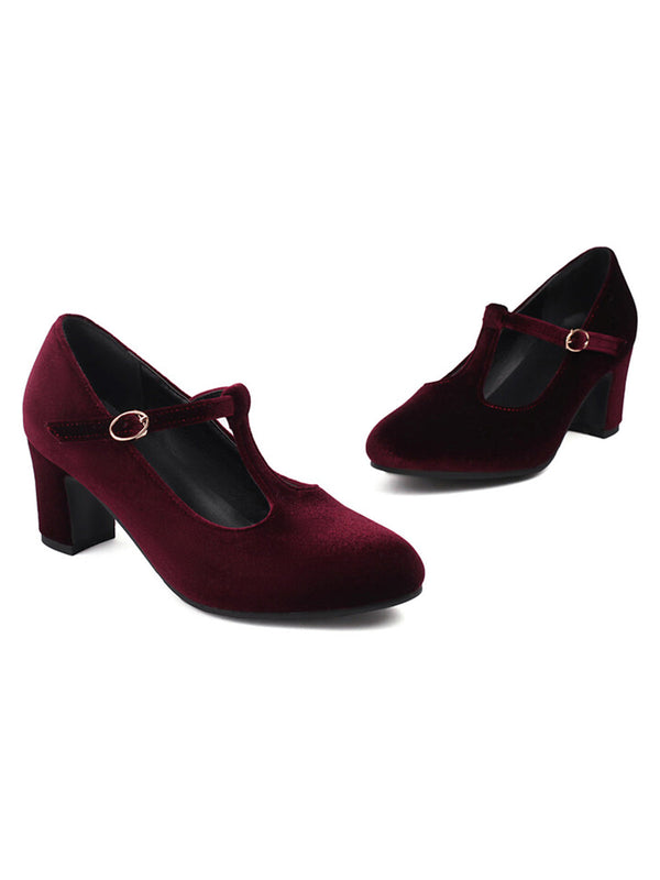 Vintage Samt T-Träger Klobigem Absatz Schuhe