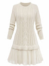 Beige 1940er Solide Zopf Stricken Plissiertes Saum Pullover Kleid