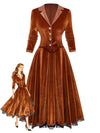 [Vorverkauf] Braun 1940er Solide Revers Samt Schein Zweiteiler Kleid