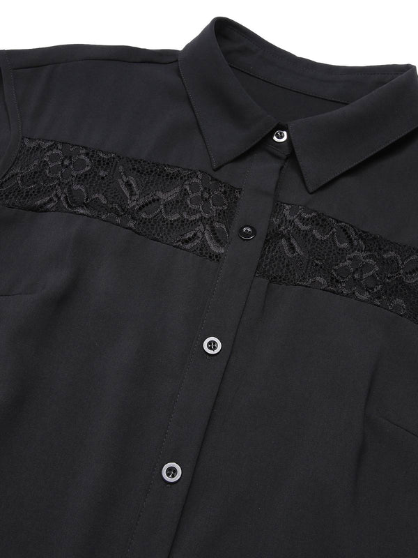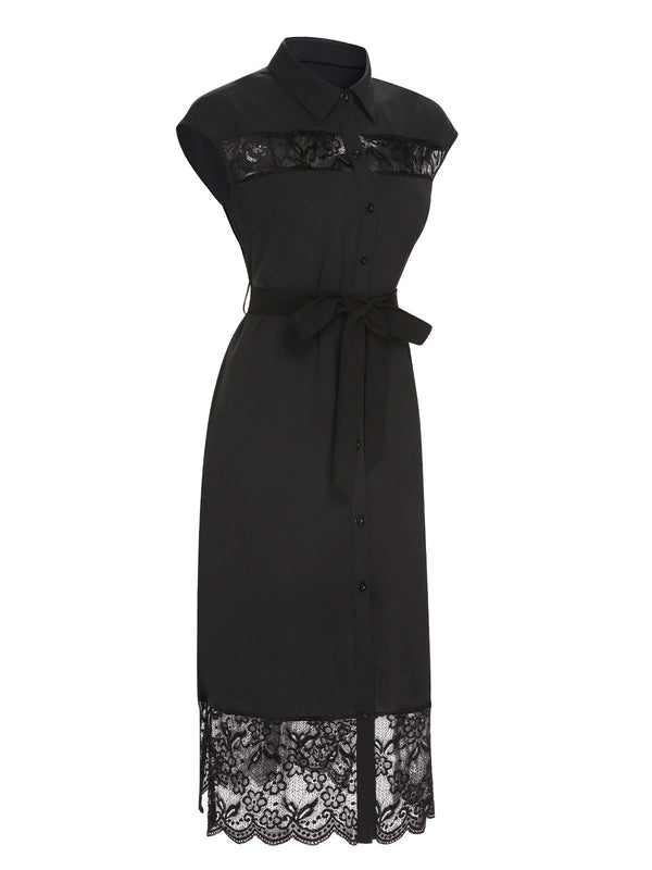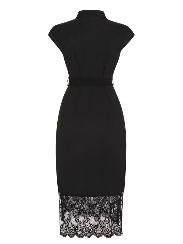 Schwarz 1940er Solide Spitze Hemdkragen Kleid