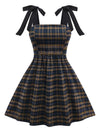 Dunkelkaffee 1950er Bogen Träger Plaid Kleid