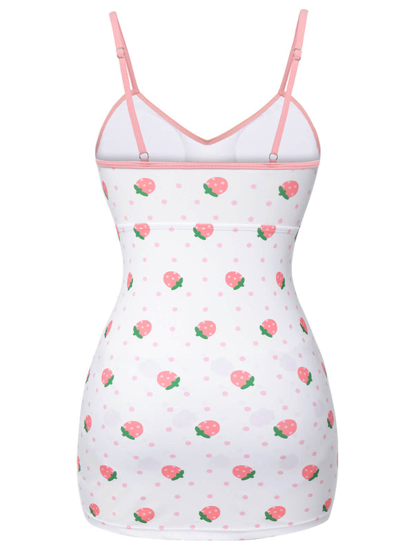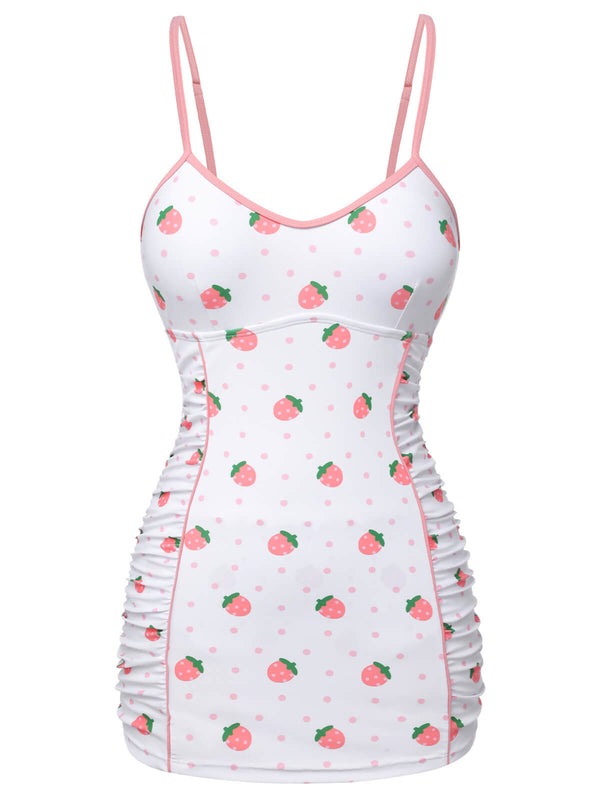 Weiß & Rosa 1950er Erdbeere Plissiertes Badeanzug