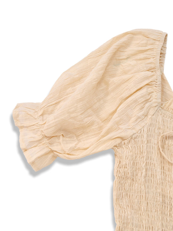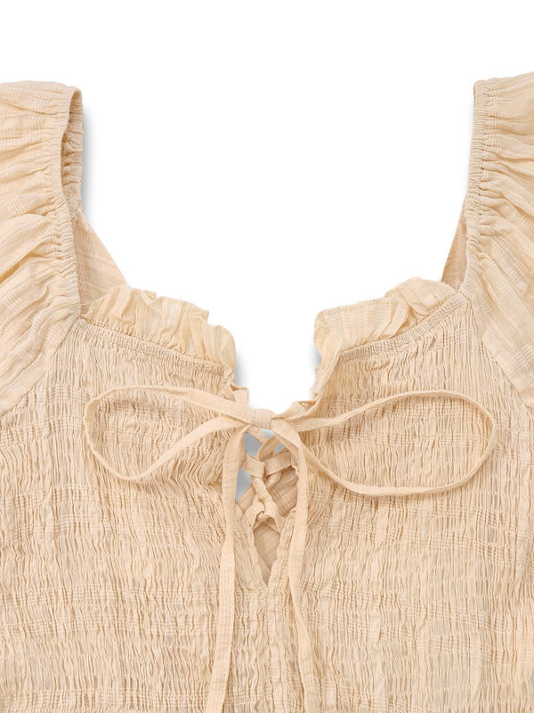Details: Quadratischer Ausschnitt, Schnürung und Puffärmel