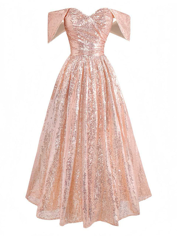 Sekt 1930er Schulterfrei Pailletten Kleid