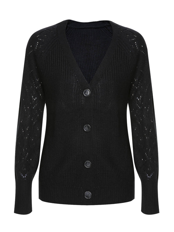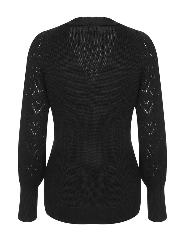 Schwarz 1940er V-Ausschnitt Knöpfen Strickpullover
