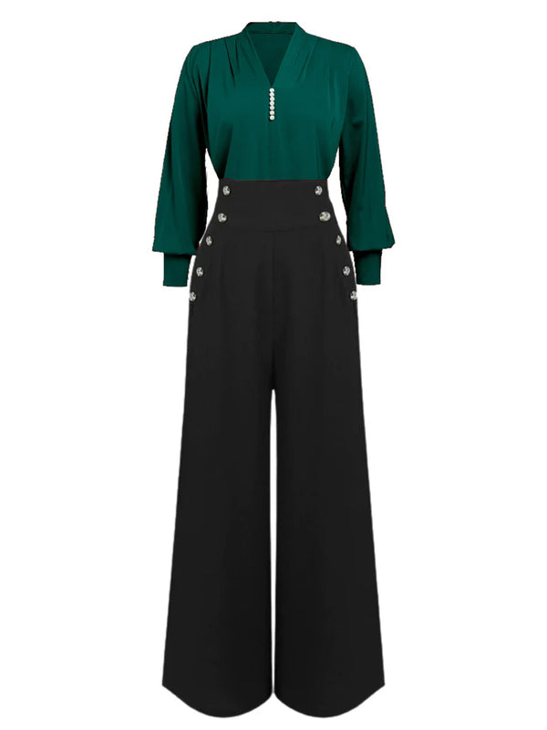 Weinrot 1930er SOLIDE BLUSE & SCHWARZ STRÄGER HOSE